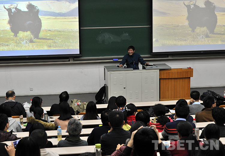 這是吳雨初在北京大學(xué)作“牦牛走進(jìn)博物館”專題講座(唐召明2015年3月13日攝)