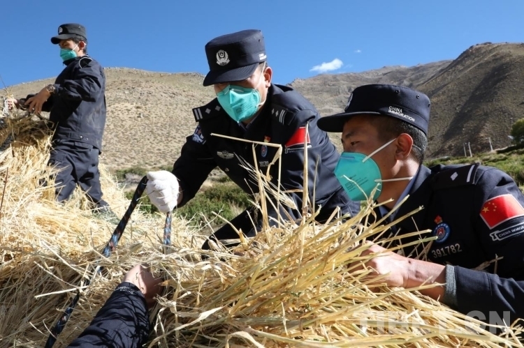 原來(lái),西藏普蘭出入境邊防檢查站斜爾瓦執(zhí)勤點(diǎn)移民管理警察在入戶(hù)走訪過(guò)程中了解到,現(xiàn)在正值秋收,老阿媽米瑪?shù)膬蓚€(gè)兒子都在外地打工,趕不回來(lái),她只能獨(dú)自望著自家成熟的青稞犯愁。了解到情況后,該站副站長(zhǎng)貢秋頓珠立刻組織帶領(lǐng)移民管理警察連續(xù)3天到老阿媽米瑪?shù)牡乩锸崭睢⒗?、搬運(yùn)青稞,將5畝地的青稞顆粒全部歸倉(cāng),解了老人的燃眉之急。