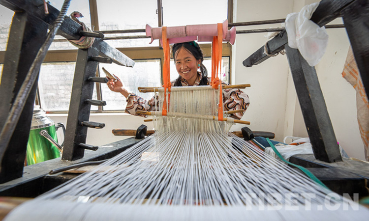 圖為村民正在編織氆氌