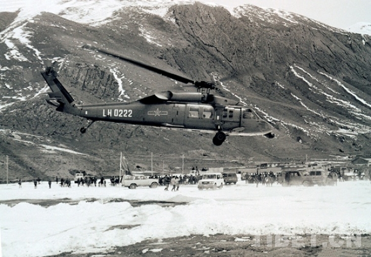旋即,首都北京來電,中央派運輸機(jī)救災(zāi)空投物資。3月27日,銀鷹展翅藏北高原,給被大雪圍困的牧民投下了糌粑、青稞、燃料、衣物和雪鏡等必需品。不幾日,中央又電令兩架“黑鷹”直升飛機(jī)投入到緊張的抗災(zāi)救災(zāi)工作中。
