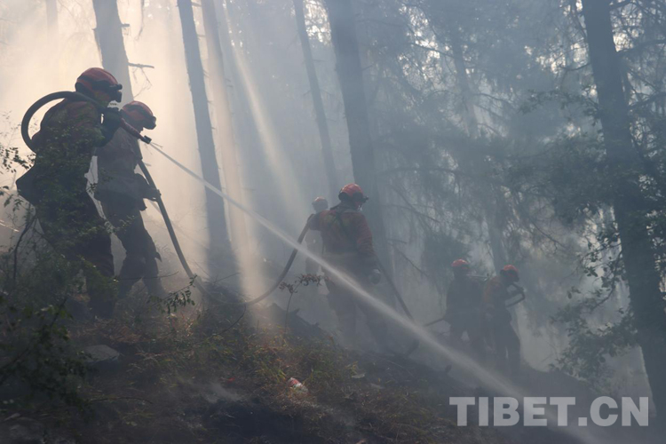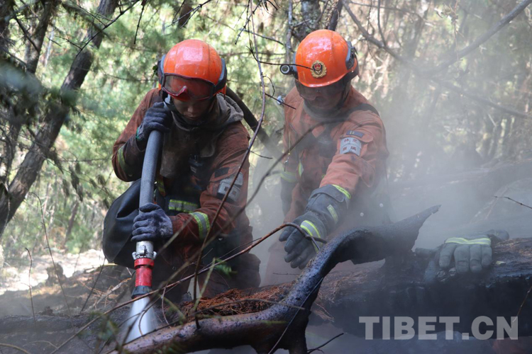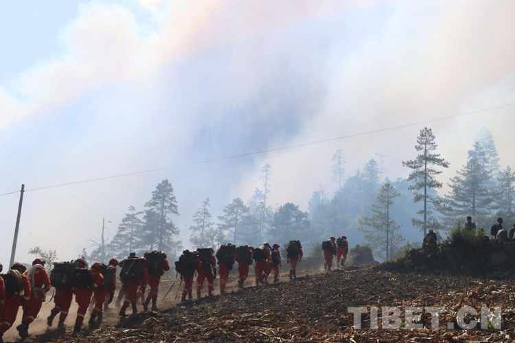火場(chǎng)上,不說(shuō)有感天動(dòng)地的故事,但是那種“無(wú)畏火魔、不怕?tīng)奚?、舍我其誰(shuí)、團(tuán)結(jié)協(xié)作”的故事卻到處可見(jiàn)。那天,我們?cè)诮泳?,第一時(shí)間趕赴現(xiàn)場(chǎng),當(dāng)看到一條長(zhǎng)長(zhǎng)的火線(xiàn)猶如一條蜿蜒的巨龍盤(pán)旋在空檔村山腰,火舌在大風(fēng)助威下翻滾著向南側(cè)撲去時(shí),飛哥和我各帶領(lǐng)10名黨員骨干以南北兩翼夾擊的陣勢(shì)迎戰(zhàn)火魔。在高達(dá)2800米的原始林區(qū),夜里溫度接近-5℃,槍頭手高琪已全身上下濕透并伴隨冰片的出現(xiàn),隱約透著讓人冷顫的寒光,顫抖的身體讓槍頭不斷左搖右擺,但他毅然肩扛槍頭,勇斗火魔。撲救完畢后,剛要準(zhǔn)備休整,中隊(duì)接到殲滅山頂火點(diǎn)的任務(wù),火情就是命令,指戰(zhàn)員背著沉重的裝備在近70-80度的亂石陡坡上,抓著樹(shù)枝一步步向上攀爬,16年兵齡的王建紅在爬山過(guò)程中使勁喘息,即使空氣中彌漫著飛舞的灰,也為吸取更多的氧氣保持體力;接近山頂時(shí),一顆直徑約80cm的滾石從山頂滾落,體型弱小的二級(jí)消防士曹橋在緊促的避險(xiǎn)哨音中采取緊急避險(xiǎn)措施成功躲避,滾石與他擦肩而過(guò),但危險(xiǎn)的環(huán)境未能抑制他戰(zhàn)斗的決心。中隊(duì)指戰(zhàn)員暢談此次滅火作戰(zhàn)感受時(shí),都紛紛笑言:“我們從海拔2300米打到了3700米,相當(dāng)于從察隅到了拉薩?!?1日,中隊(duì)轉(zhuǎn)戰(zhàn)火場(chǎng)西南線(xiàn),此時(shí)經(jīng)過(guò)5天的連續(xù)奮戰(zhàn),指戰(zhàn)員的思考能力和興奮的感覺(jué)消失殆盡,只剩下機(jī)械式行走的軀體,膝蓋有舊傷的戰(zhàn)斗班班長(zhǎng)王明因?yàn)槌?fù)荷運(yùn)動(dòng)已疼痛難忍,但他在咬牙堅(jiān)持。班長(zhǎng)宋遠(yuǎn)金、扎西歐珠主動(dòng)擔(dān)當(dāng)不畏艱險(xiǎn),從不到2300多米的地方,背著滅火裝備和滿(mǎn)滿(mǎn)的水桶,爬到4000米的山頂排除隱患,清理煙點(diǎn)。