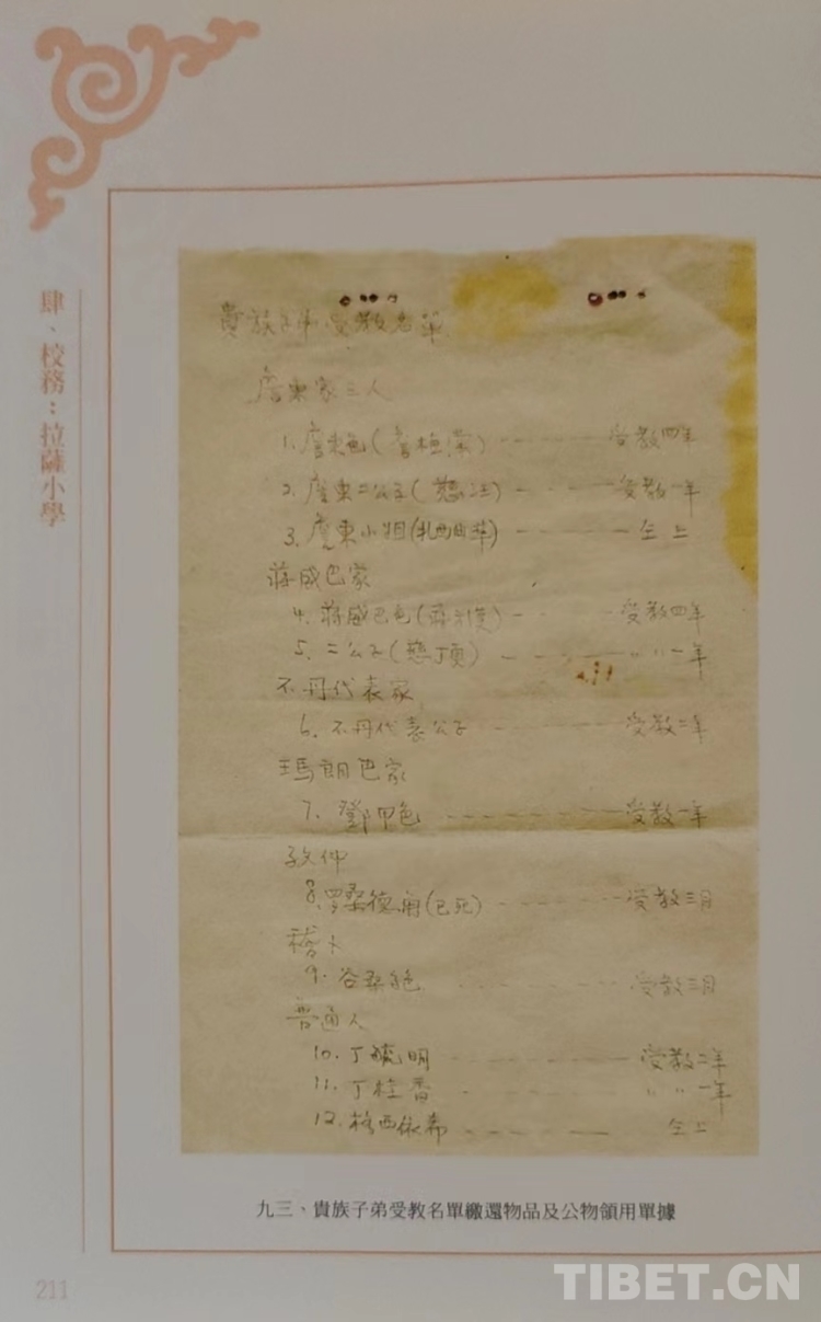 這期間,因?yàn)閷W(xué)校成績(jī)斐然,影響大增,不少貴族子弟也慕名前來就讀。拉薩小學(xué)專設(shè)一個(gè)特別班,招收貴族、富商的孩子,他們的教學(xué)是漢藏文一起上。在這個(gè)班里先后就讀的貴族子弟不少。如詹東家族的三兄妹,即詹東色、詹東·慈汪、詹東·扎西曲準(zhǔn)。詹東色有個(gè)漢語名字,叫詹逢春(又稱詹植棠。他是個(gè)對(duì)中華文化非常喜愛的貴族子弟,會(huì)一口流利的四川話,還跟阿旺堪布的一位漢族徒弟學(xué)會(huì)了唱京戲。他曾在蒙藏委員會(huì)委員長(zhǎng)吳忠信進(jìn)藏主持達(dá)賴?yán)镒驳涠Y時(shí),全力給予了幫助。此外,在拉薩小學(xué)上學(xué)的還有瑪朗巴”家族、“稽卜”家族的子弟。十四世達(dá)賴的二哥嘉樂頓珠也曾在這里學(xué)習(xí)過。其他還有邊覺、唐麥、夏扎、雪貴巴等的子女。