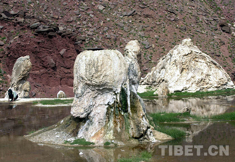 這是藏北高原榮瑪溫泉巖柱景觀(唐召明2001年攝)
