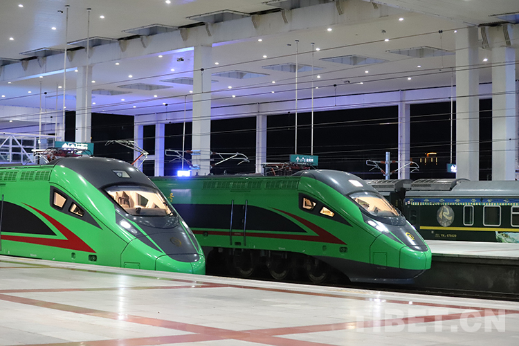 中國西藏網(wǎng)訊 11月21日清晨,拉薩至日喀則方向C925次、拉薩至林芝方向C927次復(fù)興號(hào)動(dòng)車組臨時(shí)旅客列車??吭诶_火車站站臺(tái)整裝待發(fā)。這是自今年8月西藏自治區(qū)發(fā)生本土新冠肺炎疫情以來,高原復(fù)興號(hào)動(dòng)車組首度恢復(fù)運(yùn)營。