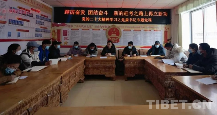 圖為洛扎縣拉郊鄉(xiāng)開展題為“踔厲奮發(fā)團(tuán)結(jié)奮斗,新的趕考之路上再立新功”的黨的二十大精神學(xué)習(xí)之黨委書記講黨課活動。