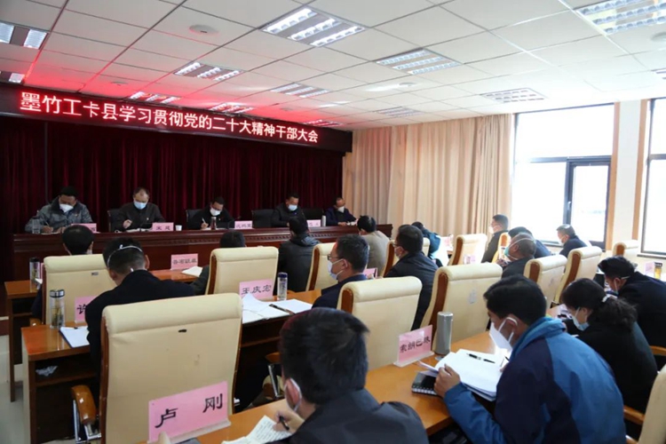 圖為墨竹工卡縣召開學(xué)習(xí)貫徹黨的二十大精神干部大會(huì) 圖片來源:微墨竹