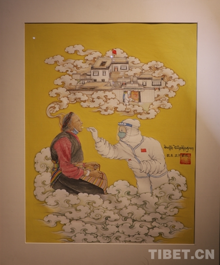 “畫家們?cè)谘永m(xù)深厚傳統(tǒng)文化,彰顯西藏唐卡繪畫高超技藝的同時(shí),不固守畫派風(fēng)格特色,用創(chuàng)新的方式聚焦偉大時(shí)代,描繪美好生活,歌頌西藏與祖國(guó)同行的盛世圖景?!蔽鞑刈灾螀^(qū)文聯(lián)副主席尹小林說(shuō)。