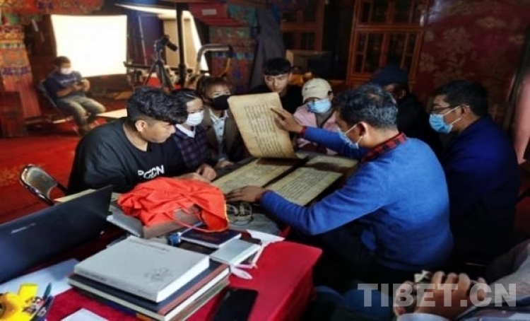 圖為2021年,西藏民族大學(xué)實習(xí)生在布達(dá)拉宮學(xué)習(xí)古籍文獻(xiàn)知識