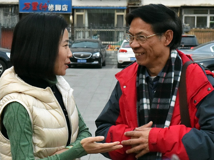 這是黃綿瑾(右)與中國評(píng)劇院院長(zhǎng)侯紅(左)就評(píng)劇藝術(shù)進(jìn)行交流(唐召明2017年11月26日攝)
