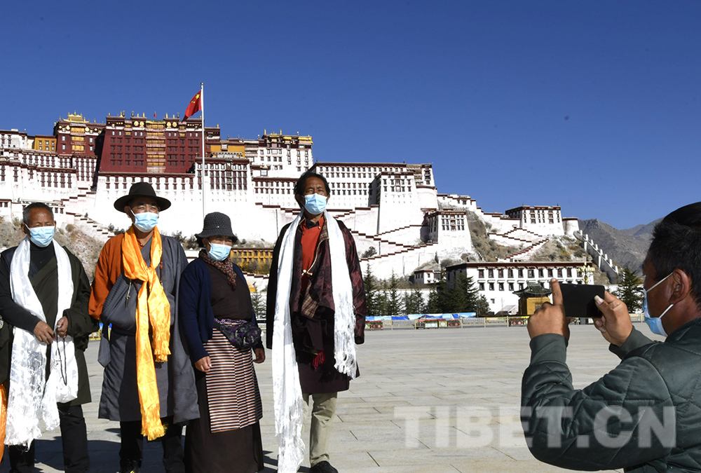 圖為2022年12月初,拉薩市各旅游景點恢復(fù)開放,游客在布達(dá)拉宮廣場拍照留念 攝影:王媛媛