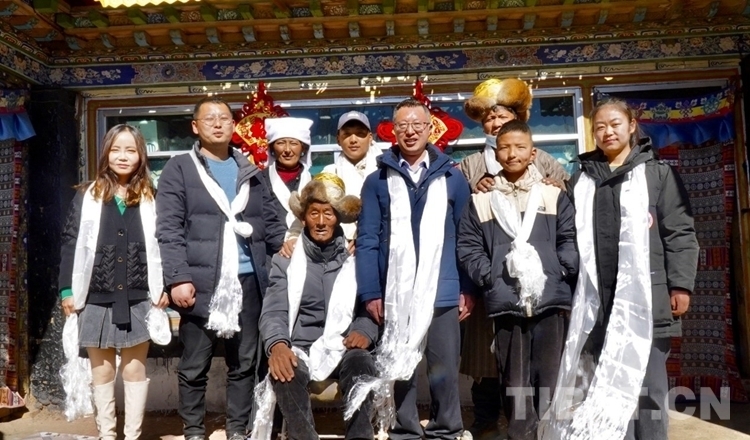 圖為多章家人與春節(jié)期間堅(jiān)守崗位的春堆鄉(xiāng)政府工作人員、駐村工作人員的合影攝影:次旦拉姆