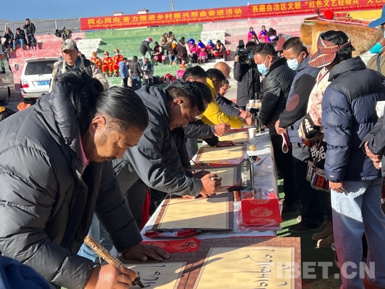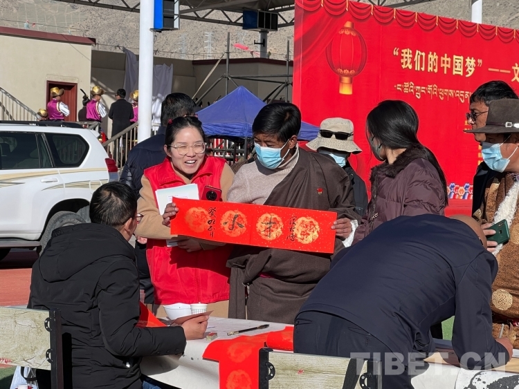 中國(guó)西藏網(wǎng)訊 2月16日,西藏自治區(qū)文聯(lián)主辦的“我們的中國(guó)夢(mèng)”——文化進(jìn)萬家活動(dòng)在極高海拔生態(tài)搬遷安置點(diǎn)開展。在送“書法”現(xiàn)場(chǎng),由西藏書法協(xié)會(huì)和山南市11位書法家為當(dāng)?shù)厝罕娝腿?00多張?jiān)⒁饷篮玫男履曜8:腿罕娖谕男履曜T傅??;顒?dòng)現(xiàn)場(chǎng)群眾絡(luò)繹不絕,大家心滿意足地拿著書法家為自己贈(zèng)送的精美“禮品”。一旁書法家們忙碌地為群眾書寫祝詞,另一旁群眾們晾曬著他們得到的書法作品,一時(shí)間現(xiàn)場(chǎng)成了“書法展”,時(shí)不時(shí)地有人前來參觀欣賞。(中國(guó)西藏網(wǎng) 記者/德吉卓瑪)