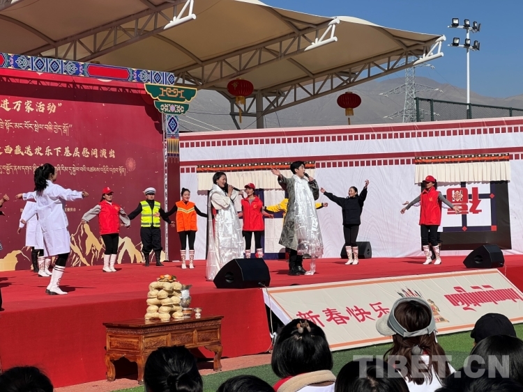 中國西藏網(wǎng)訊 正值早春二月,藏歷水兔新年即將到來。2月19日上午11:30,由中國文學藝術界聯(lián)合會、中國電影家協(xié)會、西藏自治區(qū)黨委宣傳部聯(lián)合主辦的“我們的中國夢——文化進萬家”送歡樂下基層慰問演出活動在西藏自治區(qū)拉薩市堆龍德慶區(qū)濱河體育公園舉行?! ?/p>