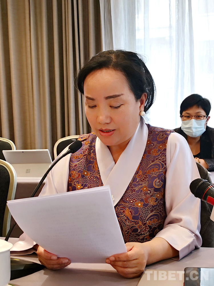 圖為全國政協(xié)委員、西藏藏醫(yī)藥大學(xué)副教授明吉措姆發(fā)言 圖片由受訪者提供