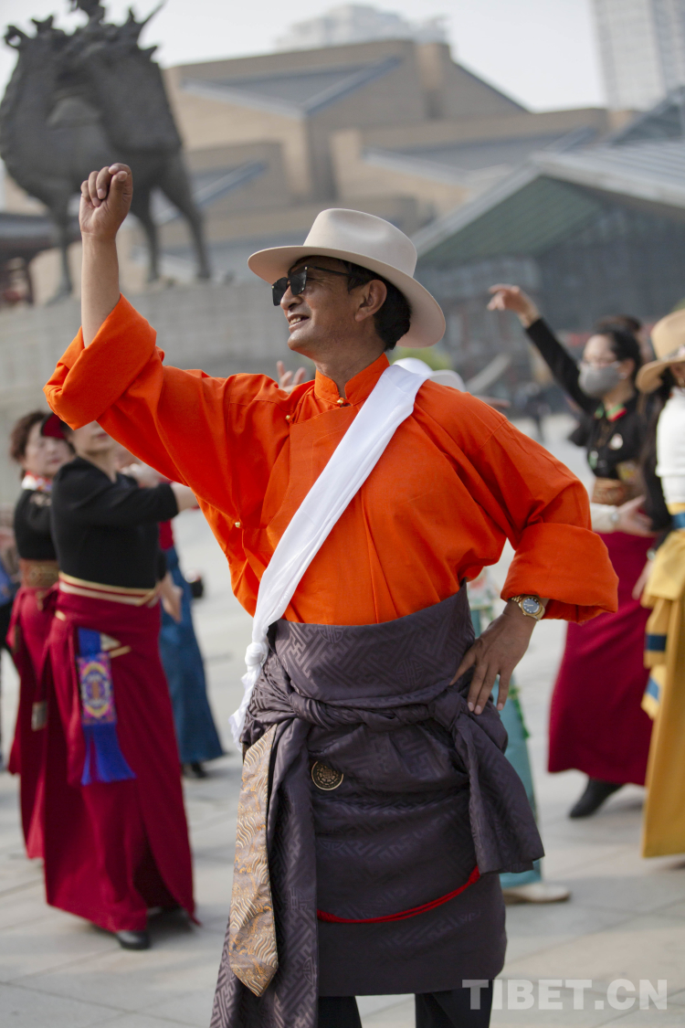 圖為大唐西市活動現(xiàn)場 多杰尼瑪正在領(lǐng)舞 攝影:呂靜