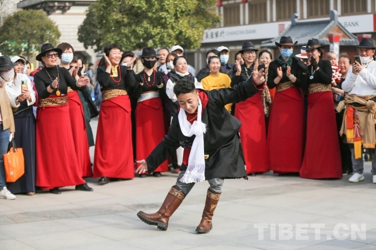 中國西藏網(wǎng)訊 3月21日,由新的社會階層人士服務(wù)團三分團主辦、北京藏地神韻非物質(zhì)文化傳播發(fā)展公司承辦的傳統(tǒng)藏舞公益推廣活動在西安舉辦。多位藏舞傳承人與藏舞愛好者齊聚西安大唐西市進行公益推廣交流。鍋莊、伊舞,《歡迎你們到來》《舞動青春年華》《吉祥的哈達(dá)》……一曲接著一曲,舞出了藏族舞蹈的無限魅力?。ㄖ袊鞑鼐W(wǎng) 記者/呂靜 姚浩然)