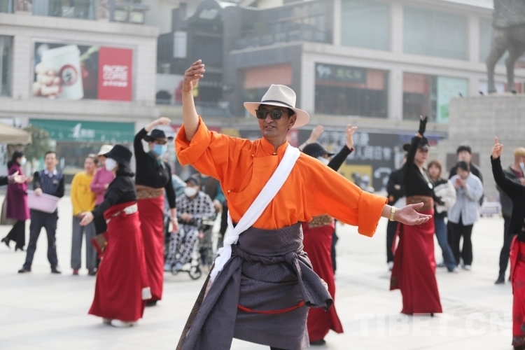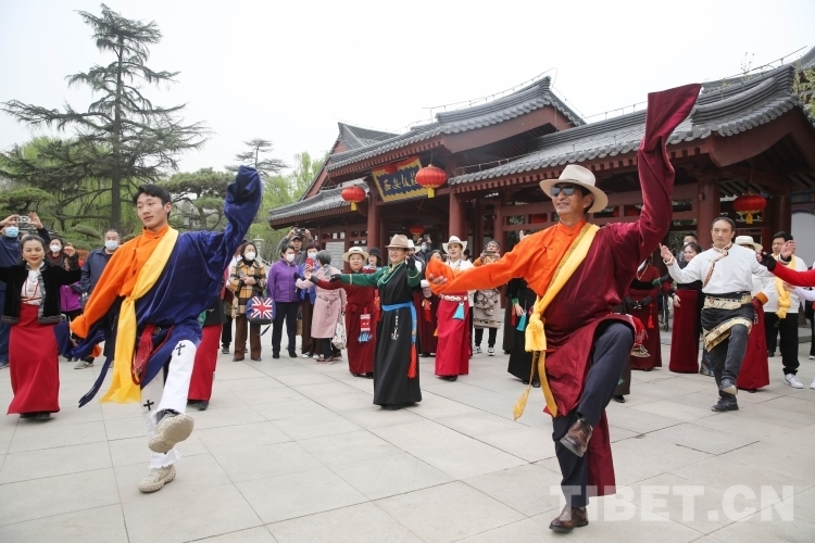 在大唐西市、興慶宮公園等地,沙多等多位藏舞推廣傳承人與西安當(dāng)?shù)劐伹f舞團隊交流展演,現(xiàn)場氣氛熱烈。
