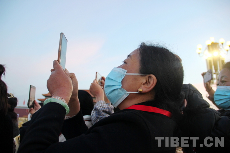 圖為“2023年西藏基層婦聯(lián)干部赴京學(xué)習(xí)參觀團”成員們紛紛用手機記錄下國旗護衛(wèi)隊行進的英姿 攝影:陳浩力