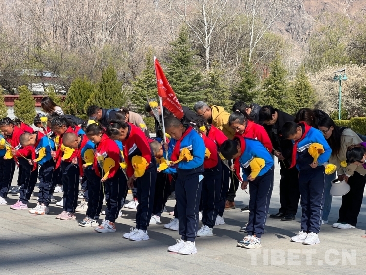 中國西藏網(wǎng)訊 4月12日上午,由西藏煙草駐日喀則市昂仁縣第十一批駐村工作隊、江蘇商會黨委、冬日暖陽愛心公益組織承辦的“領(lǐng)略非凡世界、放飛多彩夢想”公益活動工作組帶領(lǐng)來自西藏日喀則市昂仁縣多白鄉(xiāng)的30名小學(xué)生來到位于拉薩市西郊的拉薩烈士陵園緬懷革命先烈。