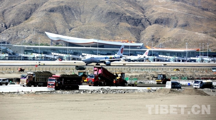 中國西藏網(wǎng)訊 各式工程機械緊張有序作業(yè),不遠處一架架飛機駛遠或降落……這正是西藏自治區(qū)拉薩貢嘎機場新建第二跑道工程如火如荼建設(shè)的場景。