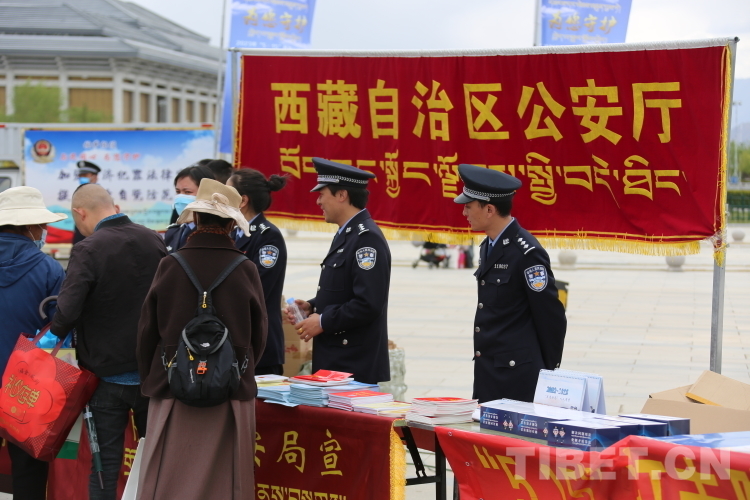 圖為在此次集中宣傳活動中,西藏自治區(qū)公安廳展位前,民警向群眾宣傳打擊和防范經(jīng)濟(jì)犯罪相關(guān)知識 攝影:王佳豪