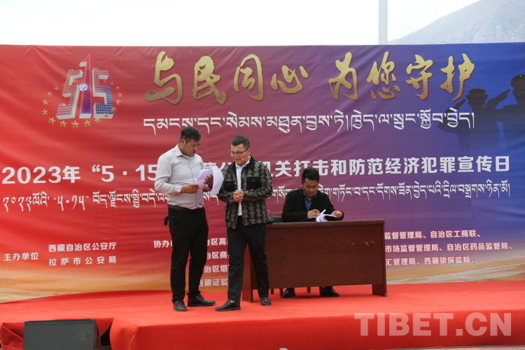 拉薩市是今年西藏“5?15”打擊和防范經(jīng)濟(jì)犯罪宣傳活動的主展示地。記者在拉薩市集中宣傳活動現(xiàn)場看到,各參加單位、部門、企業(yè)采取發(fā)放宣傳資料物品、講解各類常見經(jīng)濟(jì)犯罪類型、教授辨識假冒偽劣產(chǎn)品知識、傳授防騙打假經(jīng)驗(yàn)、為群眾答疑解惑等形式,集中宣傳了養(yǎng)老詐騙、合同詐騙、非法集資、傳銷以及如何識別假煙、假酒、假機(jī)油等。