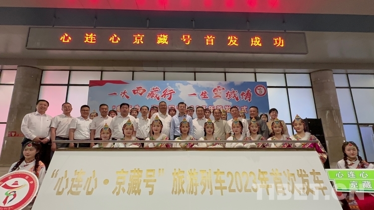 圖為“心連心·京藏號”2023年旅游列車首發(fā)儀式現(xiàn)場