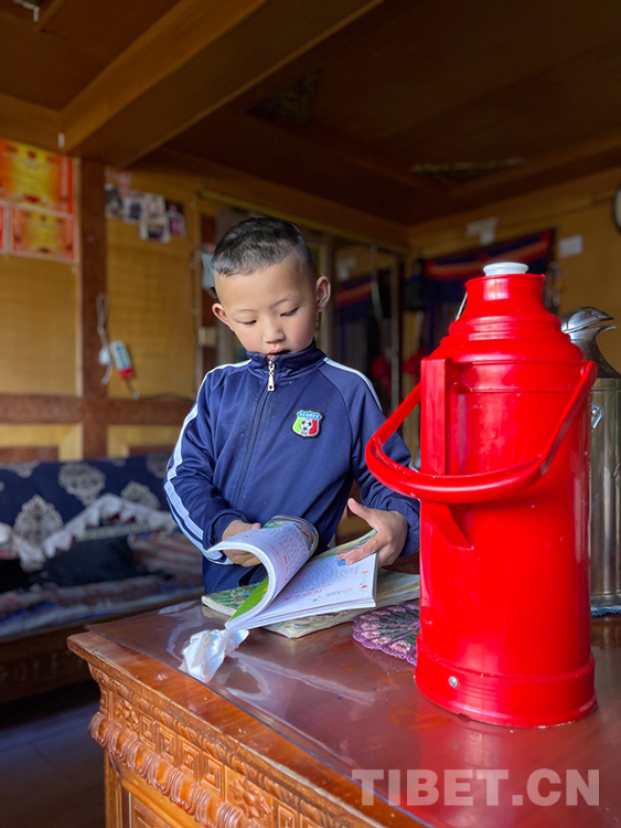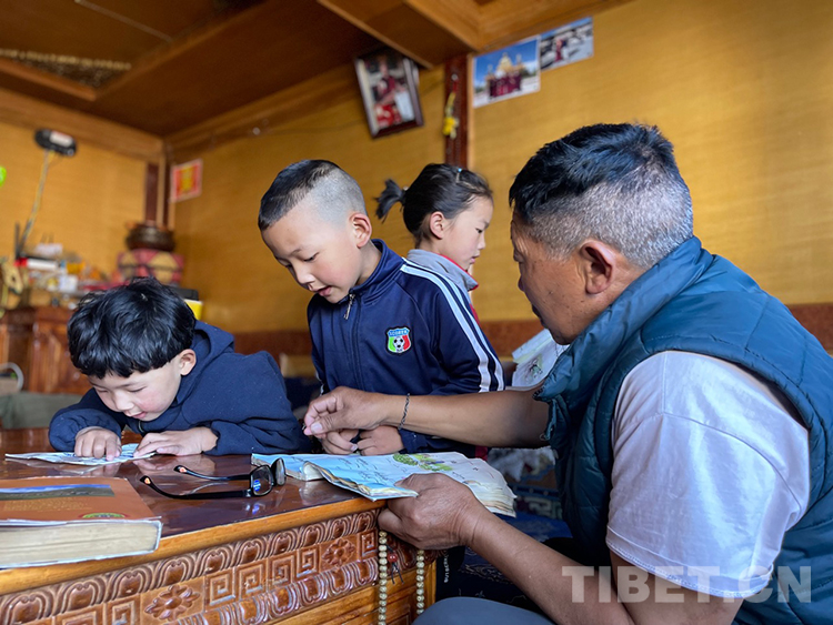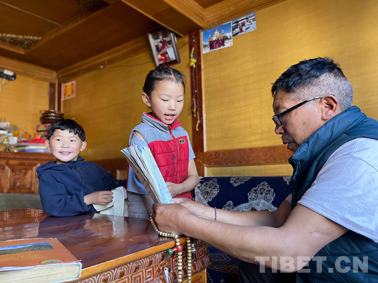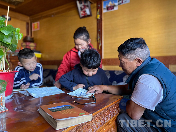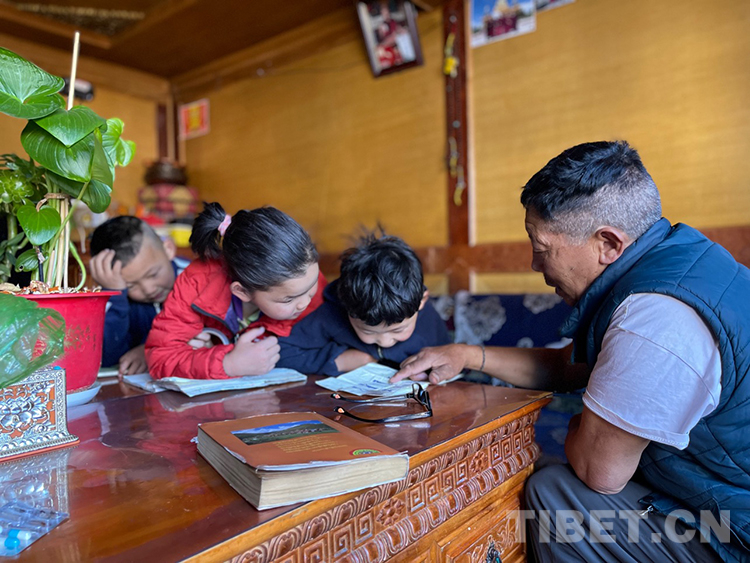 阿噶大爺自己粗通藏文,能督促和檢查藏文作業(yè),孩子們則非常享受爺爺驗收他們的學習成果,每次都爭先恐后地請爺爺聽自己的發(fā)音和背誦是否準確。平時老師還會安排上網(wǎng)課,因此不會耽誤他們的學業(yè)。