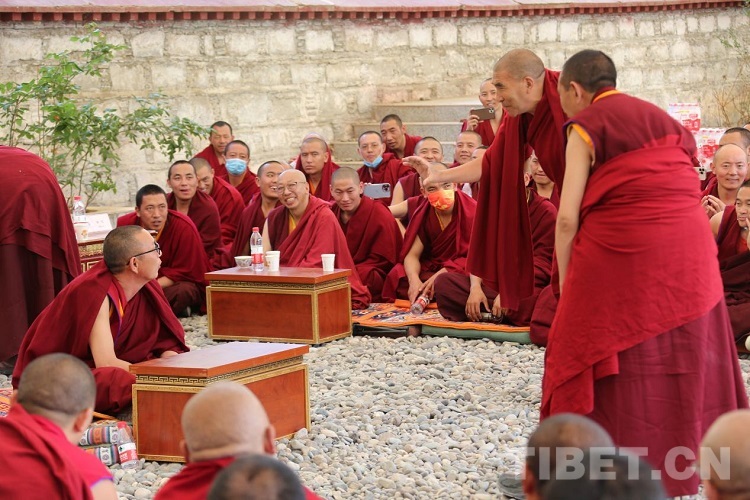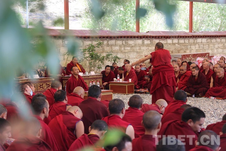 圖為中國藏語系高級佛學院2023年“拓然巴”高級學銜班招生考試(西藏)考點的辯經考試現(xiàn)場 攝影:王佳豪