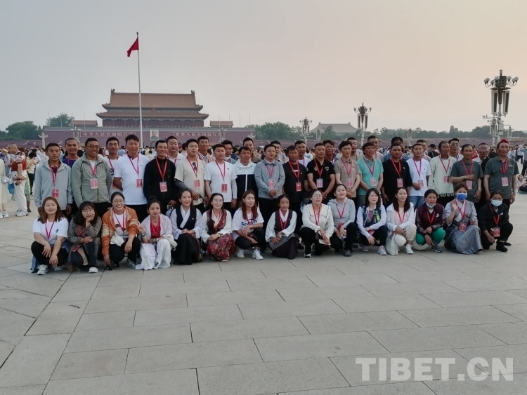 圖為西藏村居兩委基層干部赴京考察學習團6月18日在天安門廣場觀看升旗后合影 圖片由北京建藏援藏工作者協(xié)會提供