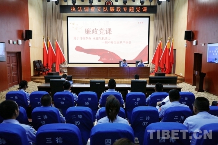 圖為西藏邊檢總站執(zhí)法調查支隊黨委副書記、政治委員為全體民警講授廉政專題黨課 攝影:仁青旺堆
