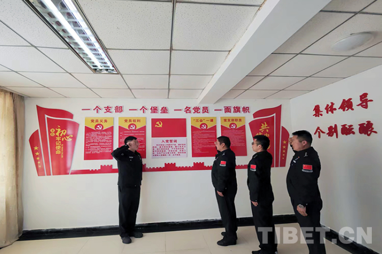 圖為西藏邊檢總站執(zhí)法調查支隊民警重溫入黨誓詞 攝影:李渠成