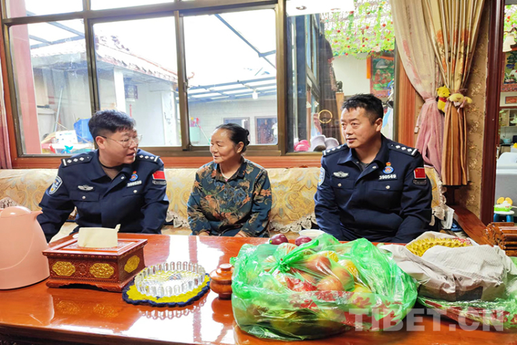 圖為西藏邊檢總站執(zhí)法調查支隊民警看望慰問轄區(qū)黨員群眾 攝影:李渠成