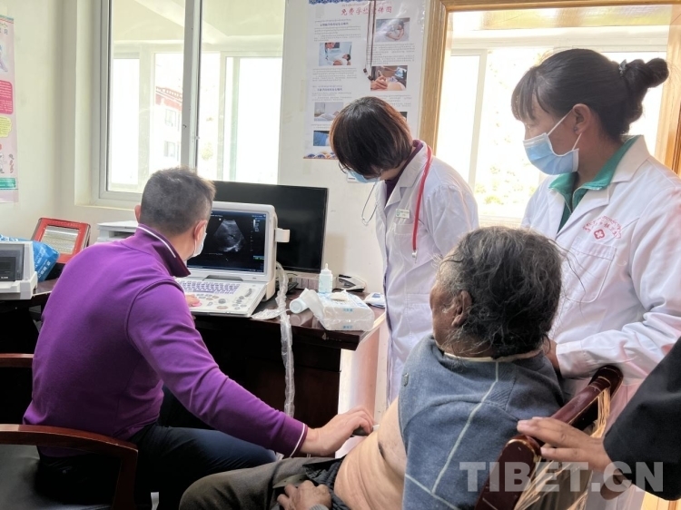 “彩超呢?”北京上地醫(yī)院院長(zhǎng)張宇在衛(wèi)生院工作人員的帶領(lǐng)下來到衛(wèi)生院二樓為75歲的桑旦江措老人進(jìn)行胸部彩超檢查,“霍主任(中國(guó)中醫(yī)科學(xué)院望京醫(yī)院心內(nèi)科主任)懷疑他有心衰,患者不能平臥睡覺、走路氣喘、雙腿腫脹,所以我想通過超聲印證一下,昨天我們也篩查了一些有心衰跡象的群眾,平時(shí)大家覺得氣喘是小問題,忍忍就好了,實(shí)際上它還是很嚴(yán)重的,要及時(shí)治療。”張醫(yī)生告訴記者,“藏族群眾對(duì)骨科和胃腸道的關(guān)注度更高,但是心臟、血管、糖尿病等不會(huì)立馬表現(xiàn)出來的慢性病不太重視,這樣往往會(huì)錯(cuò)過最佳的治療時(shí)間。所以我們應(yīng)該通過講座和培訓(xùn),一方面要增強(qiáng)群眾的健康意識(shí),另一方面也要培養(yǎng)當(dāng)?shù)赜玫蒙稀⒘舻米〉募夹g(shù)型人才?!?/p>