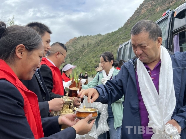 “專家們這幾天不辭辛勞,克服種種困難深入我們洛隆縣各鄉(xiāng)鎮(zhèn)為群眾們送醫(yī)送藥送健康,群眾們反響很好。我們所做的工作就是為人民服務,讓人民群眾感受到黨的關(guān)心,非常感謝您們的到來,歡迎下次再來。”昌都市政府副市長,洛隆縣委書記解文光在歡送儀式上向?qū)<覀兙传I哈達,表達感謝。