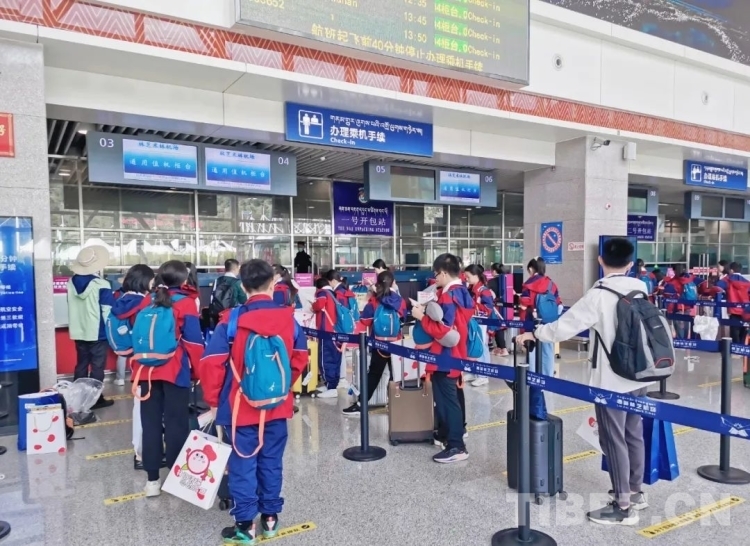 圖為暑運(yùn)期間旅客在林芝機(jī)場(chǎng)辦理乘機(jī)手續(xù)