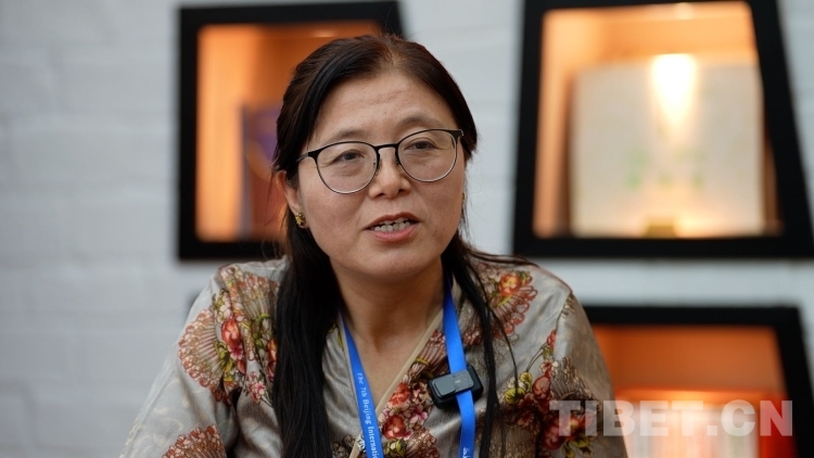 圖為擁措教授在第七屆北京國(guó)際藏學(xué)研討會(huì)上接受采訪 攝影:陳浩力