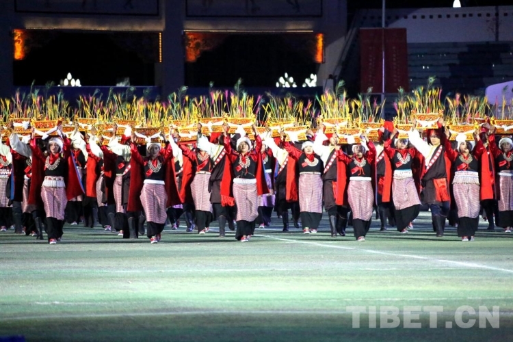 第八屆象雄文化旅游節(jié)開幕式首次在夜晚舉行。精心準(zhǔn)備的方隊(duì)入場表演、文藝演出及煙花表演配合現(xiàn)場聲、光效果,使近4個(gè)小時(shí)的開幕式更為震撼人心。