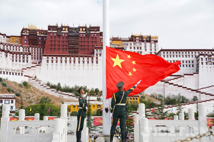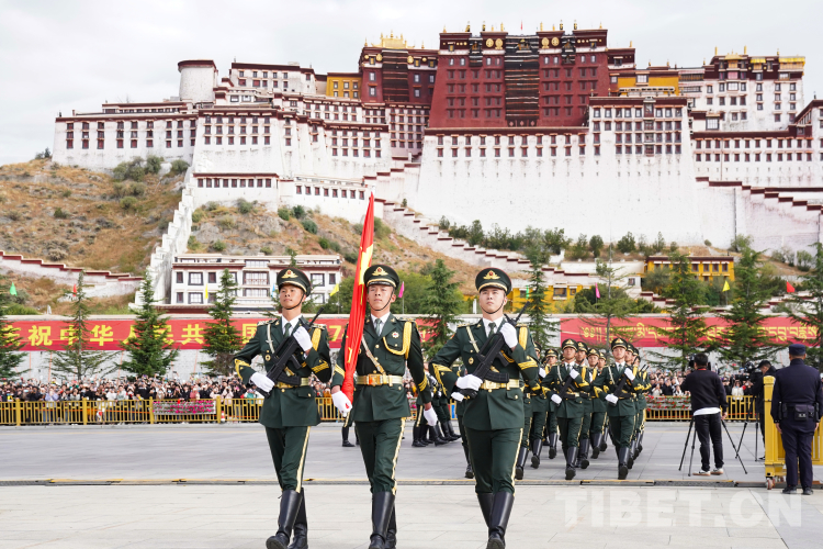 中國西藏網(wǎng)訊 10月1日上午,西藏自治區(qū)慶祝中華人民共和國成立74周年“升國旗、唱國歌”儀式在布達拉宮廣場舉行。