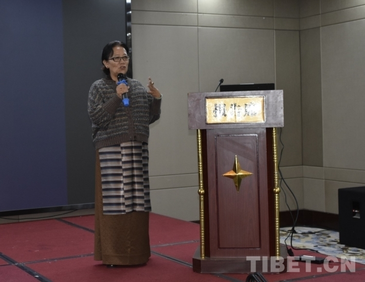 圖為11月13日,中國藏學(xué)研究中心研究員次仁央宗作關(guān)于拉薩文化的演講