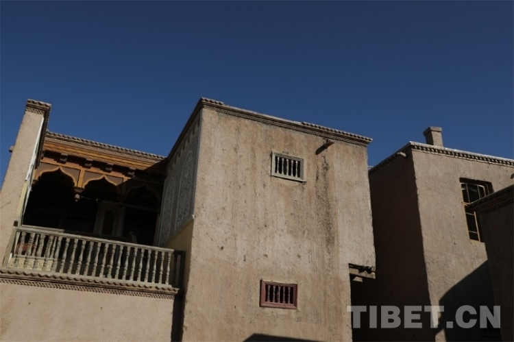 中國西藏網(wǎng)訊 在中國新疆維吾爾自治區(qū)喀什市,在繁榮熱鬧的喀什古城對面,僅一條馬路之隔,坐落著代表喀什傳統(tǒng)建筑靈魂的高臺民居。高臺民居又名闊孜其亞貝希老城區(qū),它位于吐曼河西岸一處高約30米、長寬約400米的黃土高臺上,其面積約57000平方米。“闊孜其亞貝?!庇懈哐峦撂盏囊馑迹蚨吲_民居又被稱為高崖上的土陶人家。