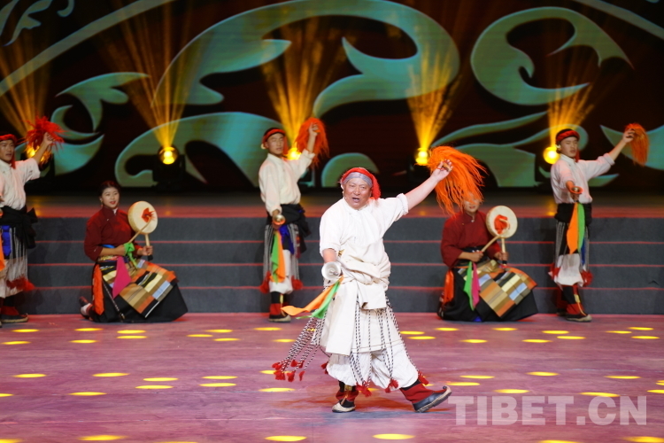 一段鼓樂飛揚(yáng)、熱情奔放的《古老的祖華熱巴》舞蹈,將本場演出推向高潮。這是一支來自西藏昌都市丁青縣尺牘鎮(zhèn)烏巴村的文藝隊(duì),阿尼老人是祖華熱巴第七代傳承人,他既是村文藝隊(duì)的“隊(duì)長”,亦是村里的支部書記?!敖裉斓难莩龇浅3晒?,我們的34位演員都是本村的村民。農(nóng)忙時(shí)他們以農(nóng)活為主,空閑了跟著我一起學(xué)跳熱巴,到今天我已經(jīng)有200多名徒弟。我一直有一個(gè)夢想,就是能帶著100名徒弟在大舞臺上給觀眾獻(xiàn)上一場精彩的演出?!?021年8月31日,阿尼老人曾在人民大會堂舉行的第六屆全國少數(shù)民族文藝會演的舞臺上,向黨和國家領(lǐng)導(dǎo)人上演了一段精彩的熱巴舞蹈。