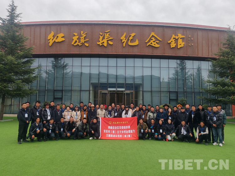 圖為西藏自治區(qū)黨委組織部全區(qū)村(居)主干鄉(xiāng)村治理能力主題培訓(xùn)示范班走進紅旗渠紀(jì)念館學(xué)員合影