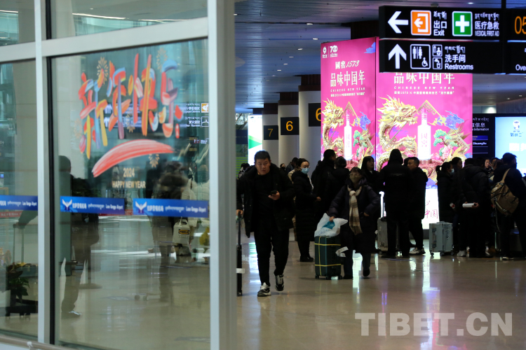 圖為1月26日春運首日,剛剛抵達拉薩貢嘎機場的旅客 攝影:王佳豪