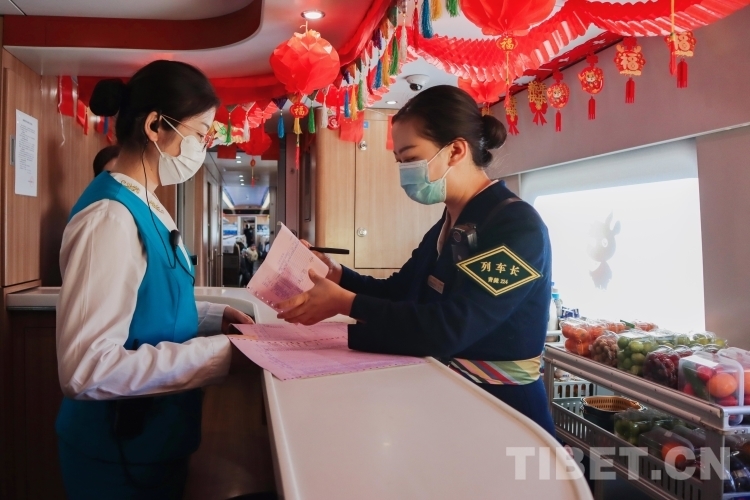 “由于春運期間旅客人數(shù)的增多,為滿足高原群眾出行需要,拉日鐵路加開了多趟臨客列車,我今天所值乘的C921次就是其中之一,列車到達日喀則后會立即變更為C922次返回拉薩。”列車長周晶今天將值乘4趟列車,在拉薩和日喀則間往返2個來回,行程共計1000余公里,從早上8點上車準(zhǔn)備到20:50返回拉薩休息,周晶一天的工作有將近12個小時都是在列車上度過的,一日三餐都在列車上解決,一天下來光在列車上就要走將近2萬步。