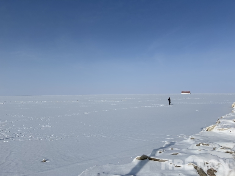 青海湖是我國面積最大的內(nèi)陸湖泊,湖岸線長(zhǎng)約360公里。落雪后的湖面更是白茫茫一片,極目遠(yuǎn)眺,水與天相接。天地間十分安靜,只余不太溫柔的風(fēng)聲在耳側(cè)呼嘯而過。偶爾有游人在冰面走動(dòng),在白色的背景下顯得格外醒目。我們的無人機(jī)好像一只勇敢的沙鷗,翱翔在水天之間。(中國西藏網(wǎng) 文/李一凡 龍真多吉 張萌萌)