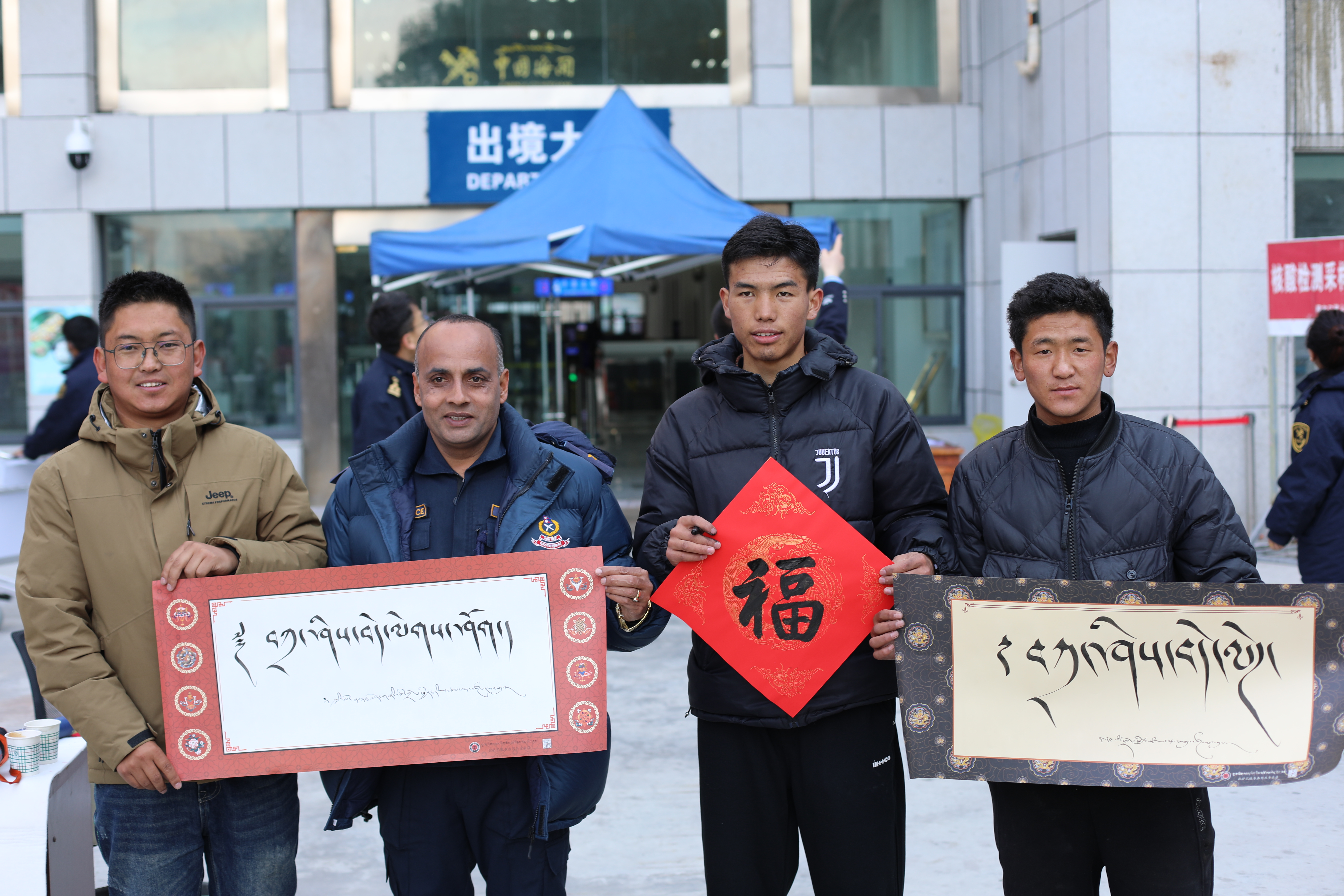 據了解,此次活動,文藝志愿者們走進海拔4500米以上的高海拔鄉(xiāng)鎮(zhèn)、深入邊境一線口岸村莊、行走里程達4000余公里,為偏遠的群眾、邊境一線干部職工、海關、邊檢站、口岸國門、游客以及市直機關單位等共贈送了書法作品和全家福4000余幅,《珠穆朗瑪》等精品圖書500余冊,學生文具200余套。通過送文藝演出、書法作品、圖書、拍全家福為主體的“三送一拍”活動,為大家?guī)砹艘粓鲐S富多彩的文化盛宴,送來了春節(jié)和藏歷新年的美好祝福。