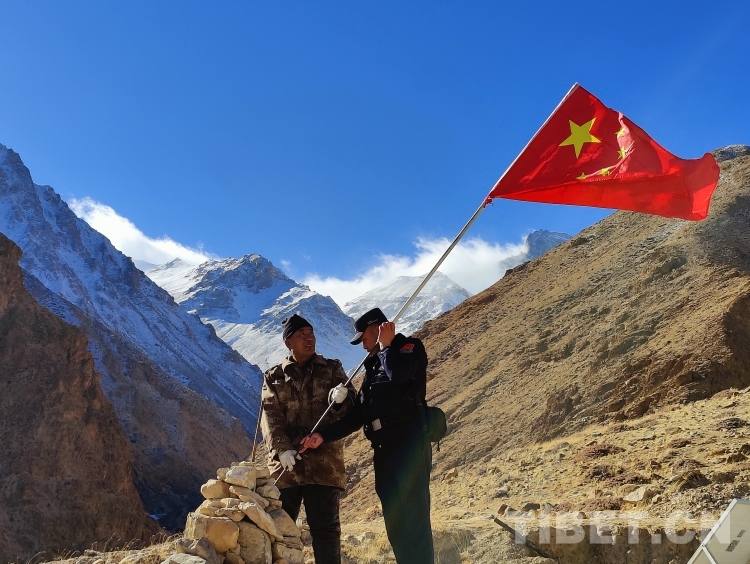 “最近幾周溫度太低了,旗桿都跟土凍在一起了,今天把國(guó)旗換成新的,再過(guò)十幾小時(shí)就要迎接新年咯。”旗桿是插在土中的一根幾米長(zhǎng)的鋼管,周圍壘上30厘米高的大石塊,用來(lái)固定。邊巴次仁一邊敲擊著“旗桿”,一邊哈著白氣。