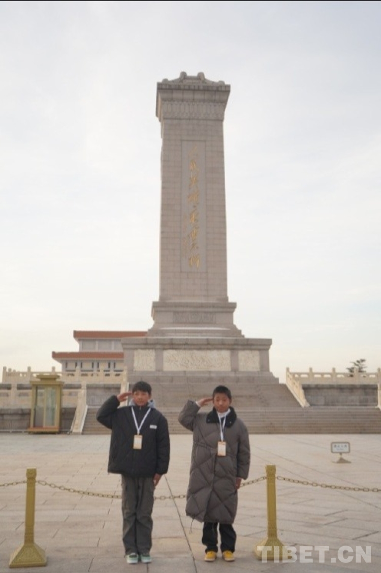 中國西藏網(wǎng)訊 “革命先輩們?yōu)榱俗屛覀冞^上好的生活,用自己的生命守護(hù)了我們,我要向他們敬禮!”來自西藏自治區(qū)日喀則市邊境縣學(xué)生赴北京參觀研學(xué)活動(dòng)的22名中學(xué)生中的扎西平措鄭重其事地向人民英雄紀(jì)念碑敬禮。
