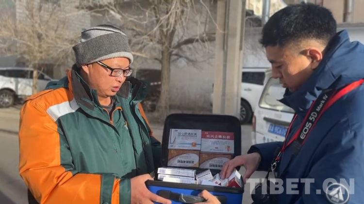 北京同心共鑄公益基金會志愿者為葛軍送上高原抗疫藥箱。陳明 攝